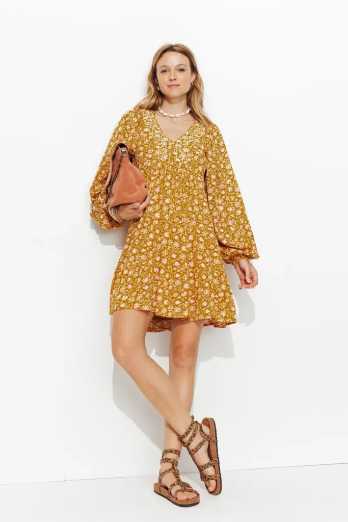 Associez votre robe à des accessoires choisis : une pochette élégante, des escarpins à talons et des bijoux délicats suffisent à créer une tenue sophistiquée. Le style bohème peut également s’adapter aux soirées avec des robes longues fluides accompagnées de sandales à talons et de bijoux dorés.